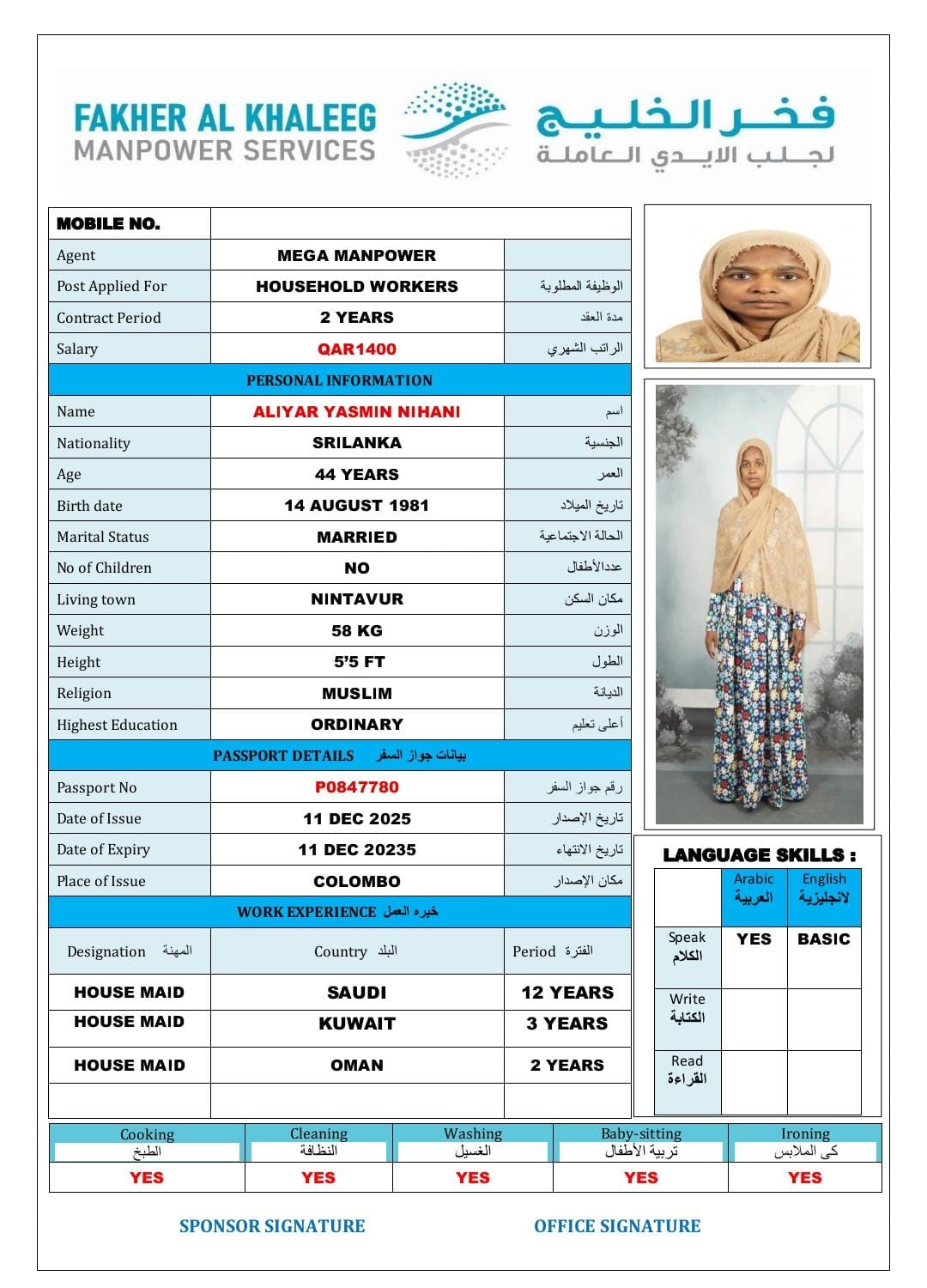 Welcome Are you looking for a driver, nurse, house manager, cleaner, nanny, secretary, professional workers for companies, security and guard personnel, foreman .... etc. Have you spent a long time looking for a maid? Have you made a great effort to find the right person? But to no avail ... Don't worry, we have the perfect solution to your problem Services…