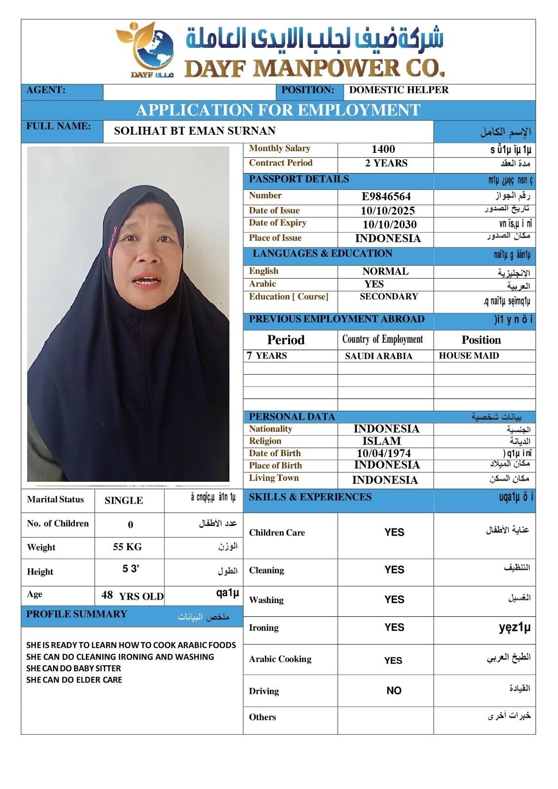 Welcome Are you looking for a driver, nurse, house manager, cleaner, nanny, secretary, professional workers for companies, security and guard personnel, foreman .... etc. Have you spent a long time looking for a maid? Have you made a great effort to find the right person? But to no avail ... Don't worry, we have the perfect solution to your problem Services…