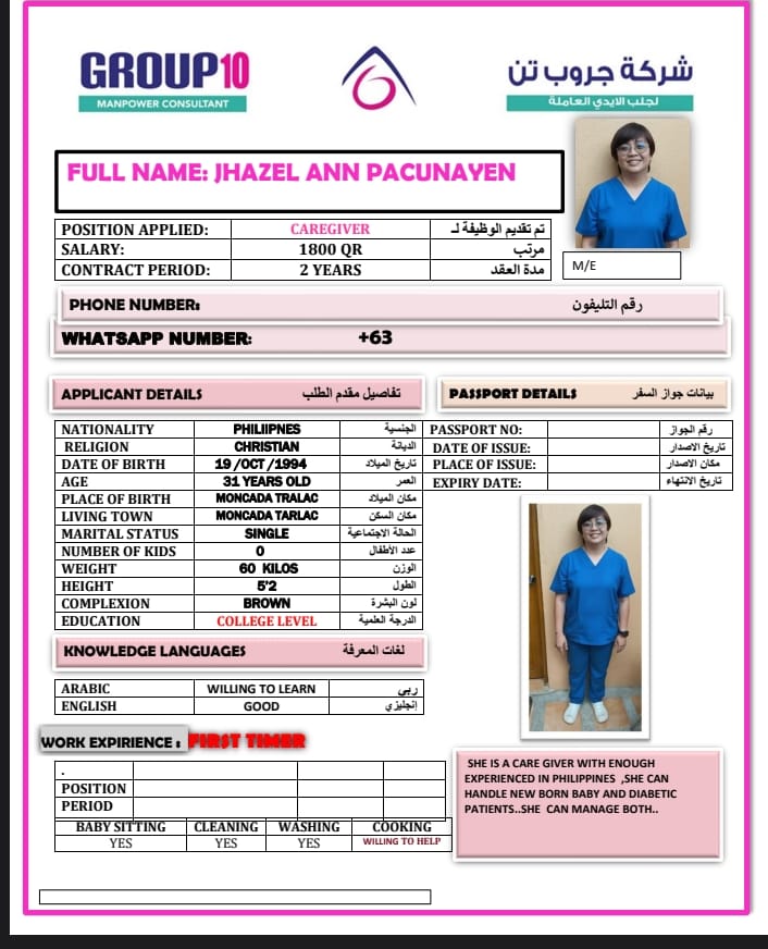 JHAZEL ANN PACUNAYEN/PHILIPPINE CARE GIVER