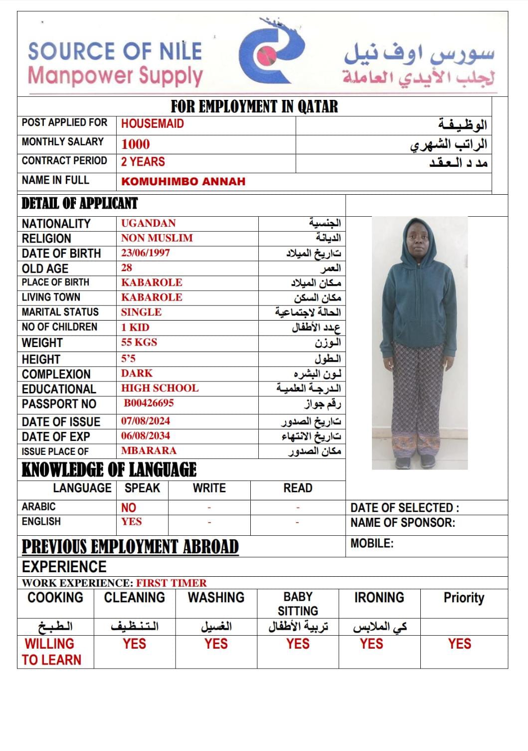 | SHE CAN DO THE HOUSEHOLD CHORES SHE CAN TAKE GOOD CARE OF CHILDREN WILLING TO EXCEED THE CONTRACT | |