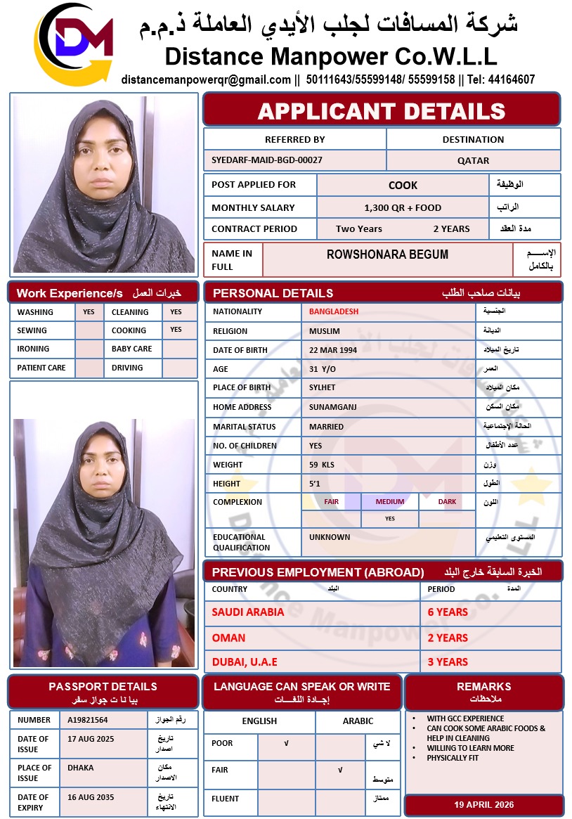 Welcome Are you looking for a driver, nurse, house manager, cleaner, nanny, secretary, professional workers for companies, security and guard personnel, foreman .... etc. Have you spent a long time looking for a maid? Have you made a great effort to find the right person? But to no avail ... Don't worry, we have the perfect solution to your problem Services…