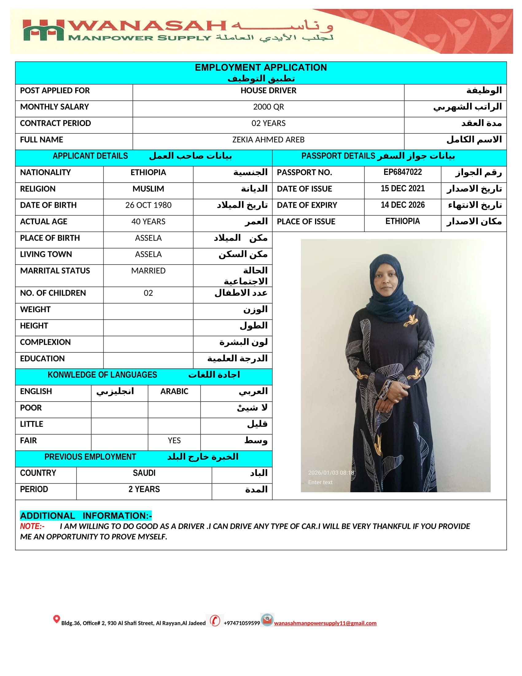Welcome Are you looking for a driver, nurse, house manager, cleaner, nanny, secretary, professional workers for companies, security and guard personnel, foreman .... etc. Have you spent a long time looking for a maid? Have you made a great effort to find the right person? But to no avail ... Don't worry, we have the perfect solution to your problem Services…