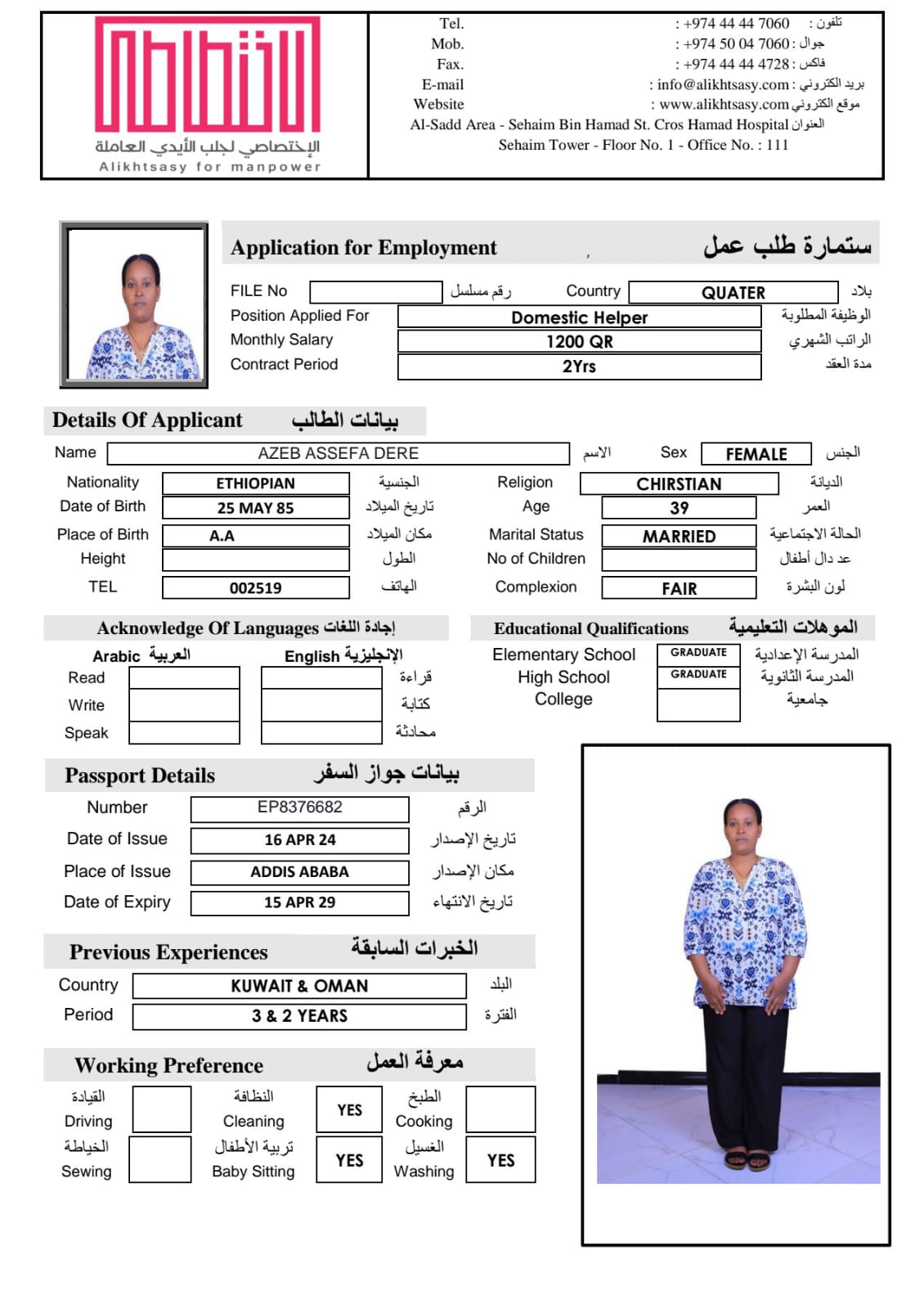 Welcome Are you looking for a driver, nurse, house manager, cleaner, nanny, secretary, professional workers for companies, security and guard personnel, foreman .... etc. Have you spent a long time looking for a maid? Have you made a great effort to find the right person? But to no avail ... Don't worry, we have the perfect solution to your problem Services…