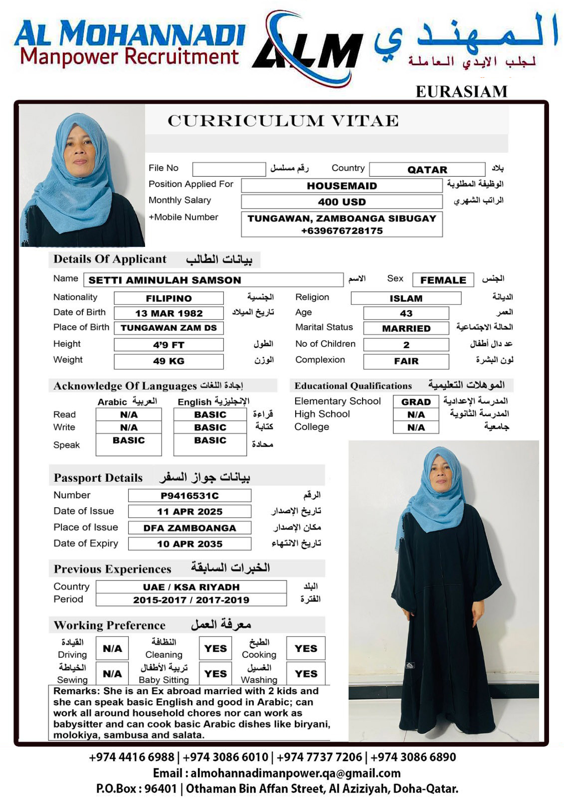 Welcome Are you looking for a driver, nurse, house manager, cleaner, nanny, secretary, professional workers for companies, security and guard personnel, foreman .... etc. Have you spent a long time looking for a maid? Have you made a great effort to find the right person? But to no avail ... Don't worry, we have the perfect solution to your problem Services…