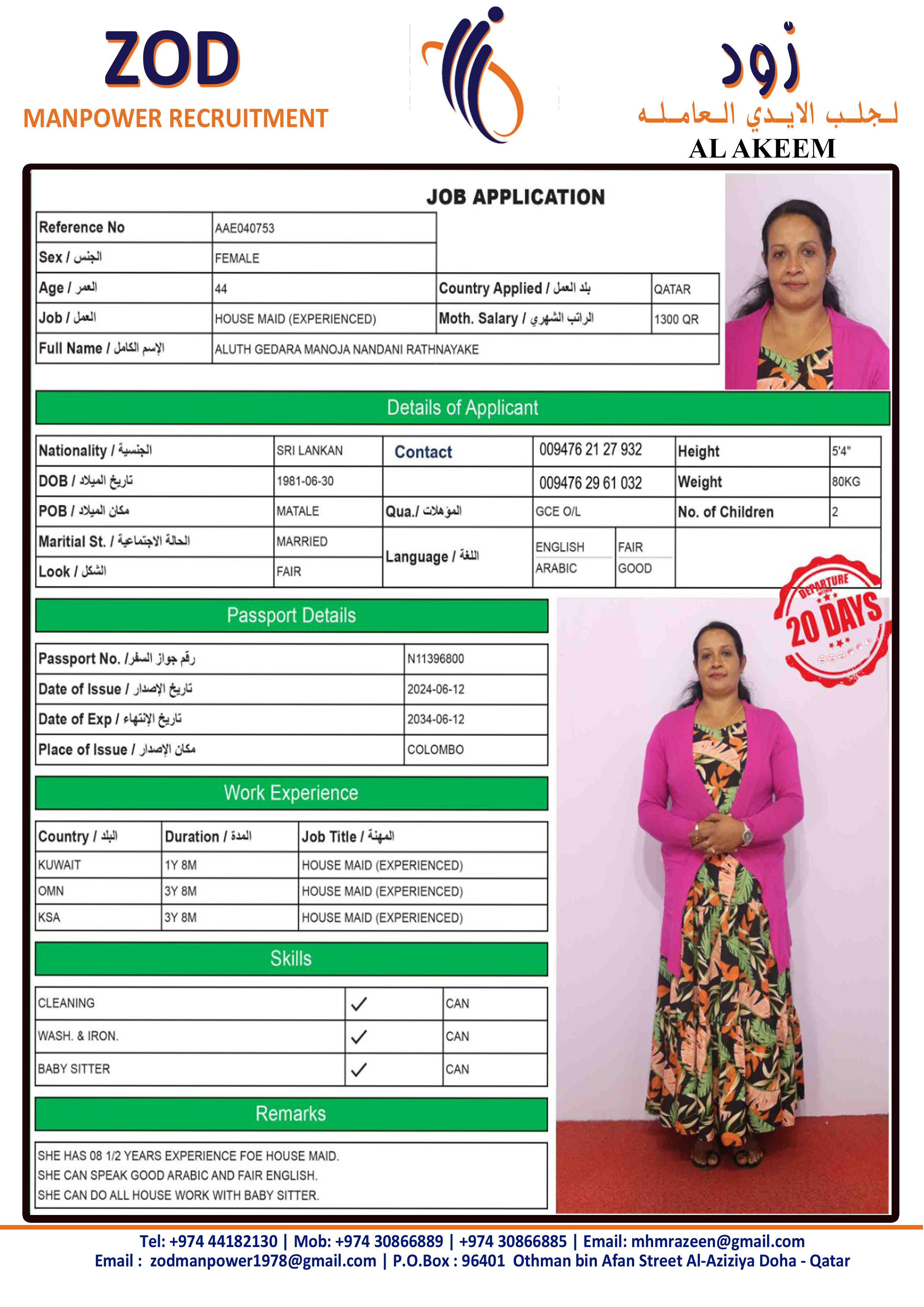 Welcome Are you looking for a driver, nurse, house manager, cleaner, nanny, secretary, professional workers for companies, security and guard personnel, foreman .... etc. Have you spent a long time looking for a maid? Have you made a great effort to find the right person? But to no avail ... Don't worry, we have the perfect solution to your problem Services…