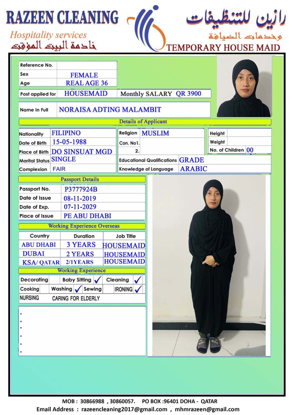 Welcome Are you looking for a driver, nurse, house manager, cleaner, nanny, secretary, professional workers for companies, security and guard personnel, foreman .... etc. Have you spent a long time looking for a maid? Have you made a great effort to find the right person? But to no avail ... Don't worry, we have the perfect solution to your problem Services…