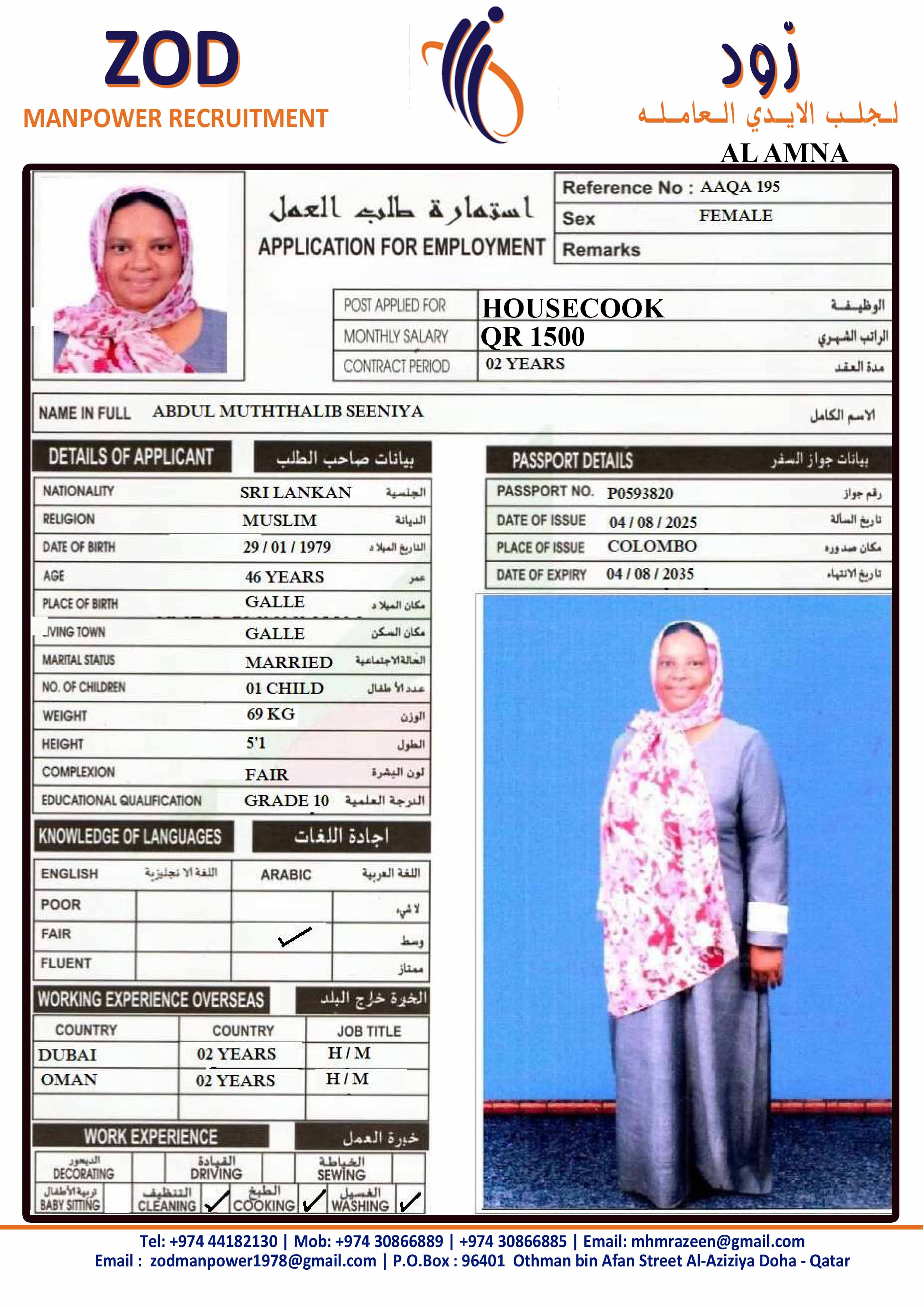 Name - English SEENIYA ABDUL MUTHTHALIB
