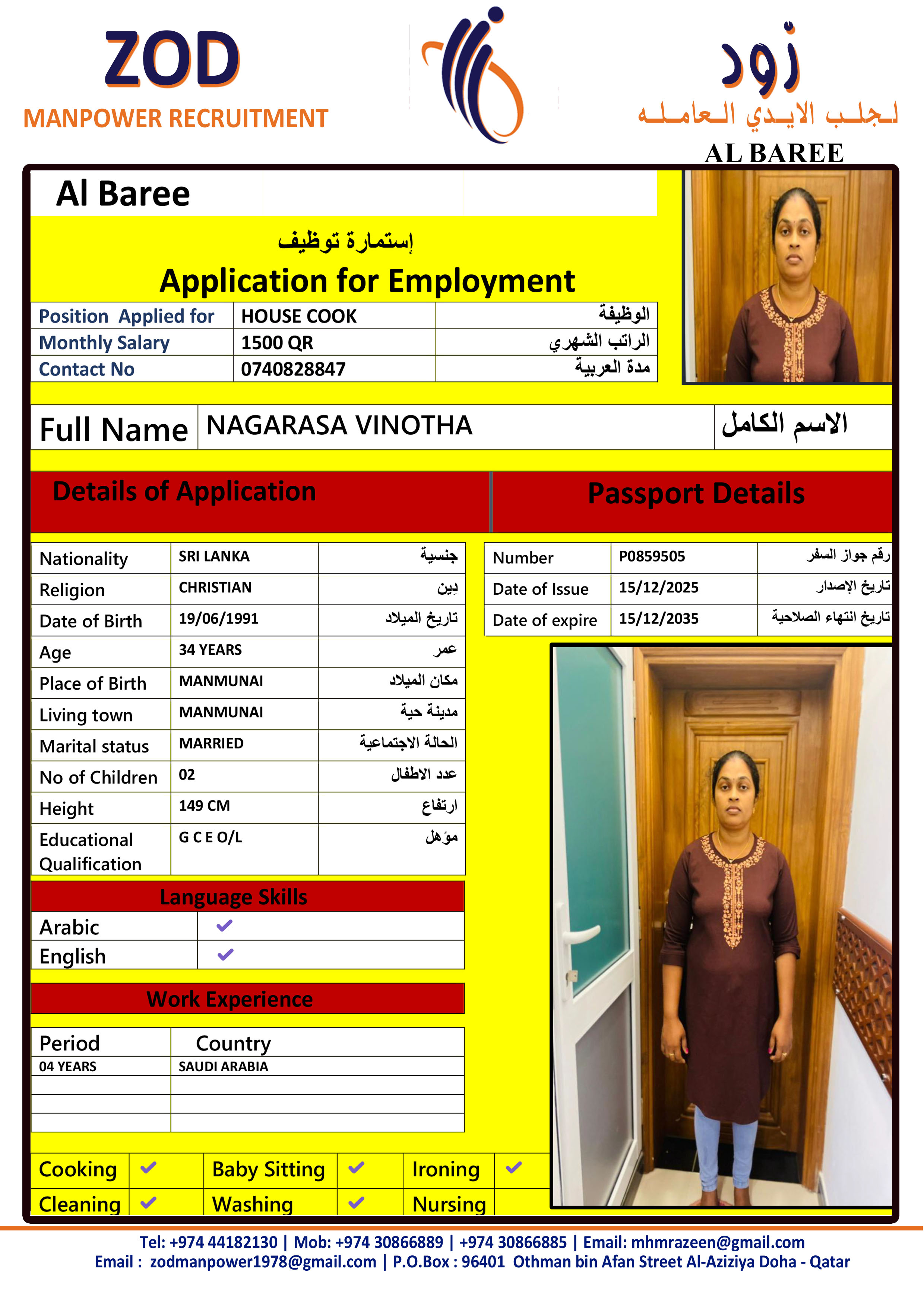 Name - English VINOTHA NAGARASA