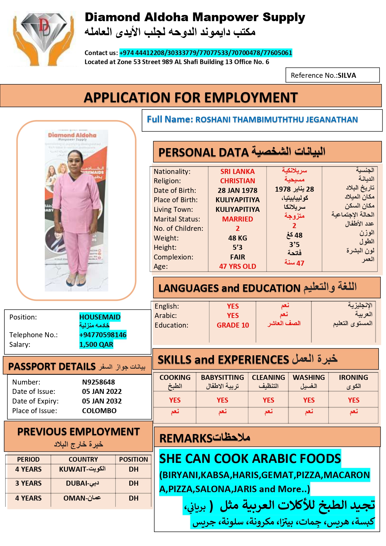 Name - English ROSHANI THAMBIMUTHTHU JEGANATHAN