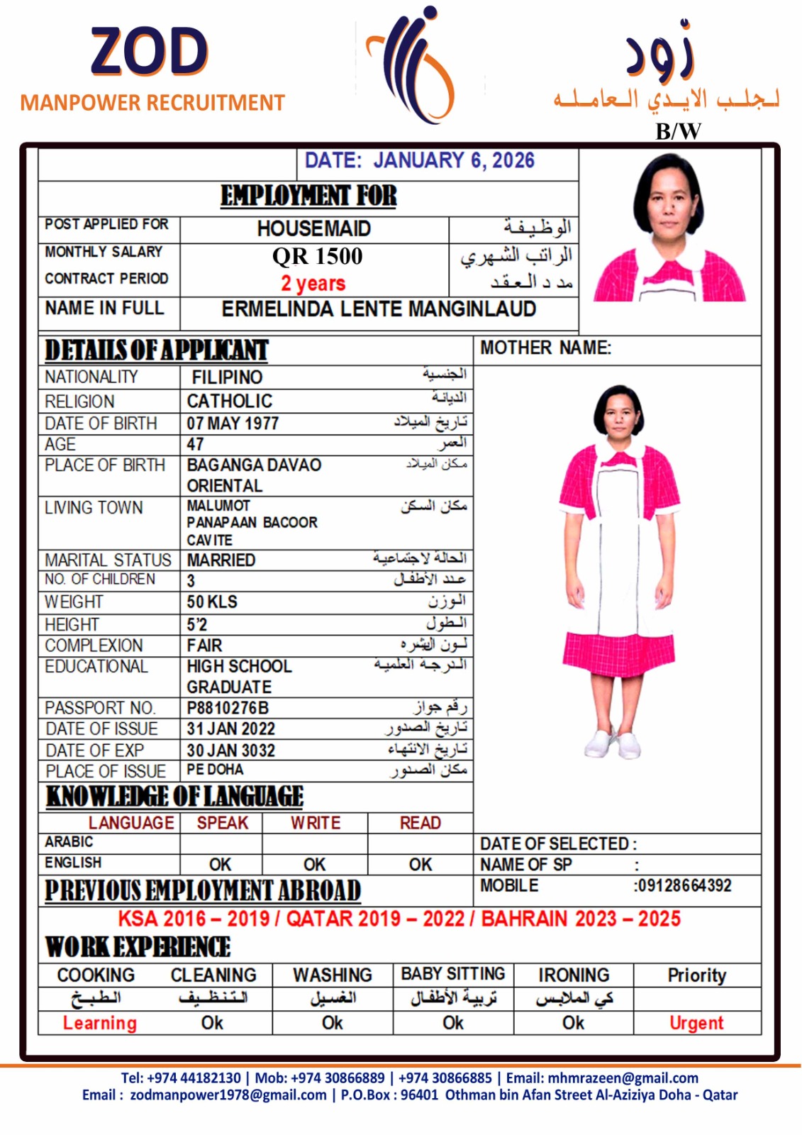 Welcome Are you looking for a driver, nurse, house manager, cleaner, nanny, secretary, professional workers for companies, security and guard personnel, foreman .... etc. Have you spent a long time looking for a maid? Have you made a great effort to find the right person? But to no avail ... Don't worry, we have the perfect solution to your problem Services…