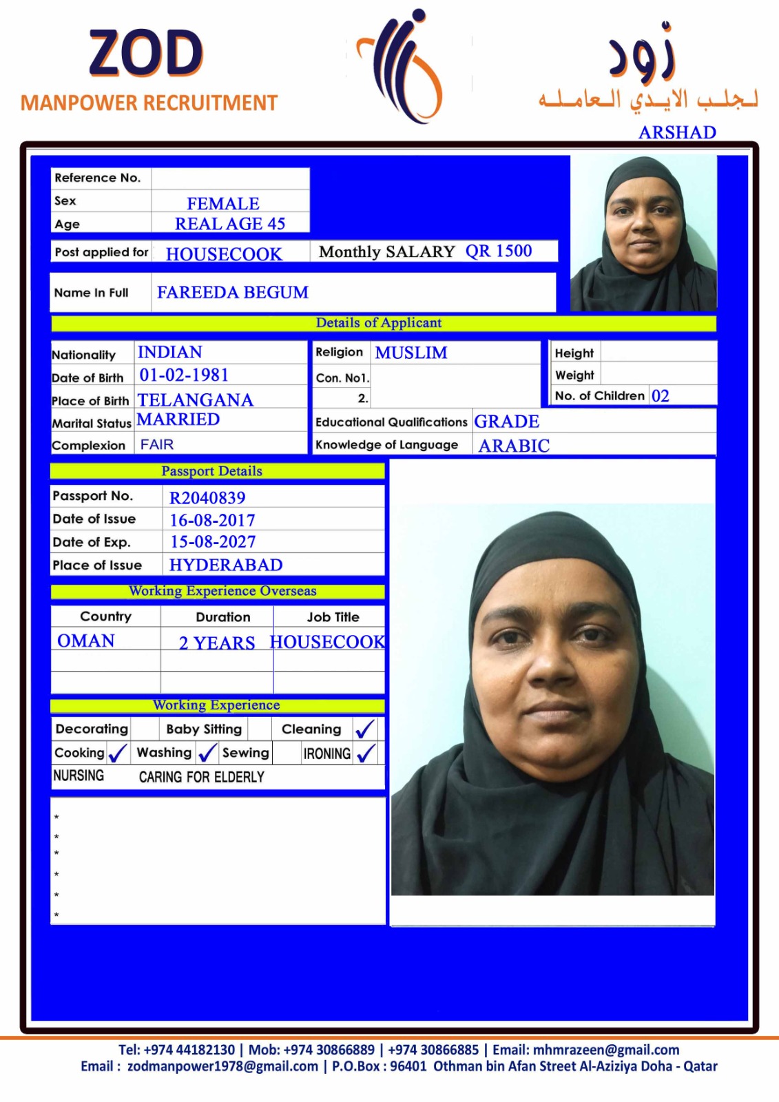 Name - English FAREEDA BEGUM