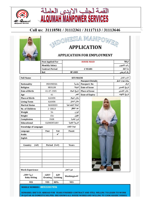 Welcome Are you looking for a driver, nurse, house manager, cleaner, nanny, secretary, professional workers for companies, security and guard personnel, foreman .... etc. Have you spent a long time looking for a maid? Have you made a great effort to find the right person? But to no avail ... Don't worry, we have the perfect solution to your problem Services…