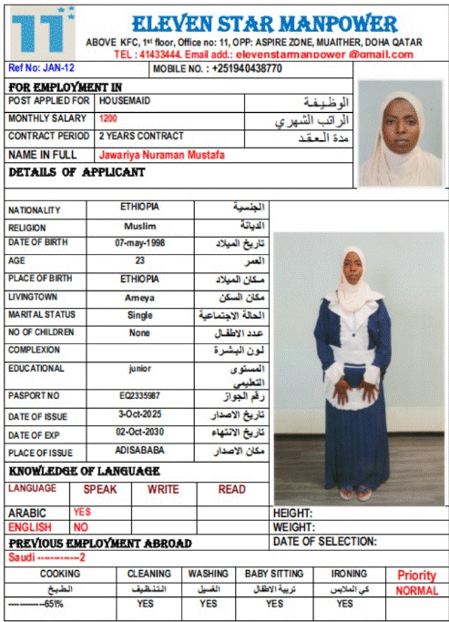 Salary 1,200 QR QAR