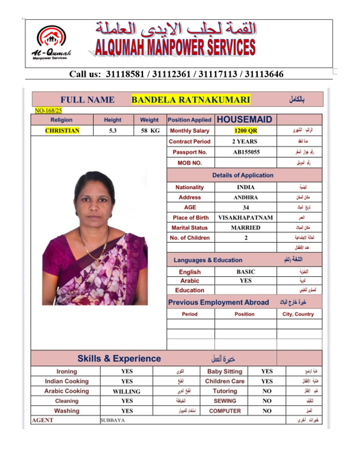 Welcome Are you looking for a driver, nurse, house manager, cleaner, nanny, secretary, professional workers for companies, security and guard personnel, foreman .... etc. Have you spent a long time looking for a maid? Have you made a great effort to find the right person? But to no avail ... Don't worry, we have the perfect solution to your problem Services…