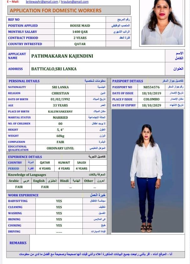 SHE CAN DO ALL HOUSEHOD WORK SUCH AS CLEANING WASHING IRONING AND COOKING AS WELL