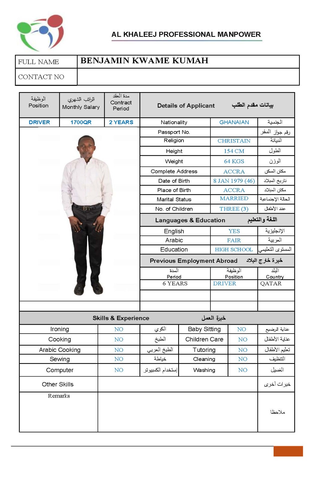 Name - English BENJAMIN KWAME KUMAH