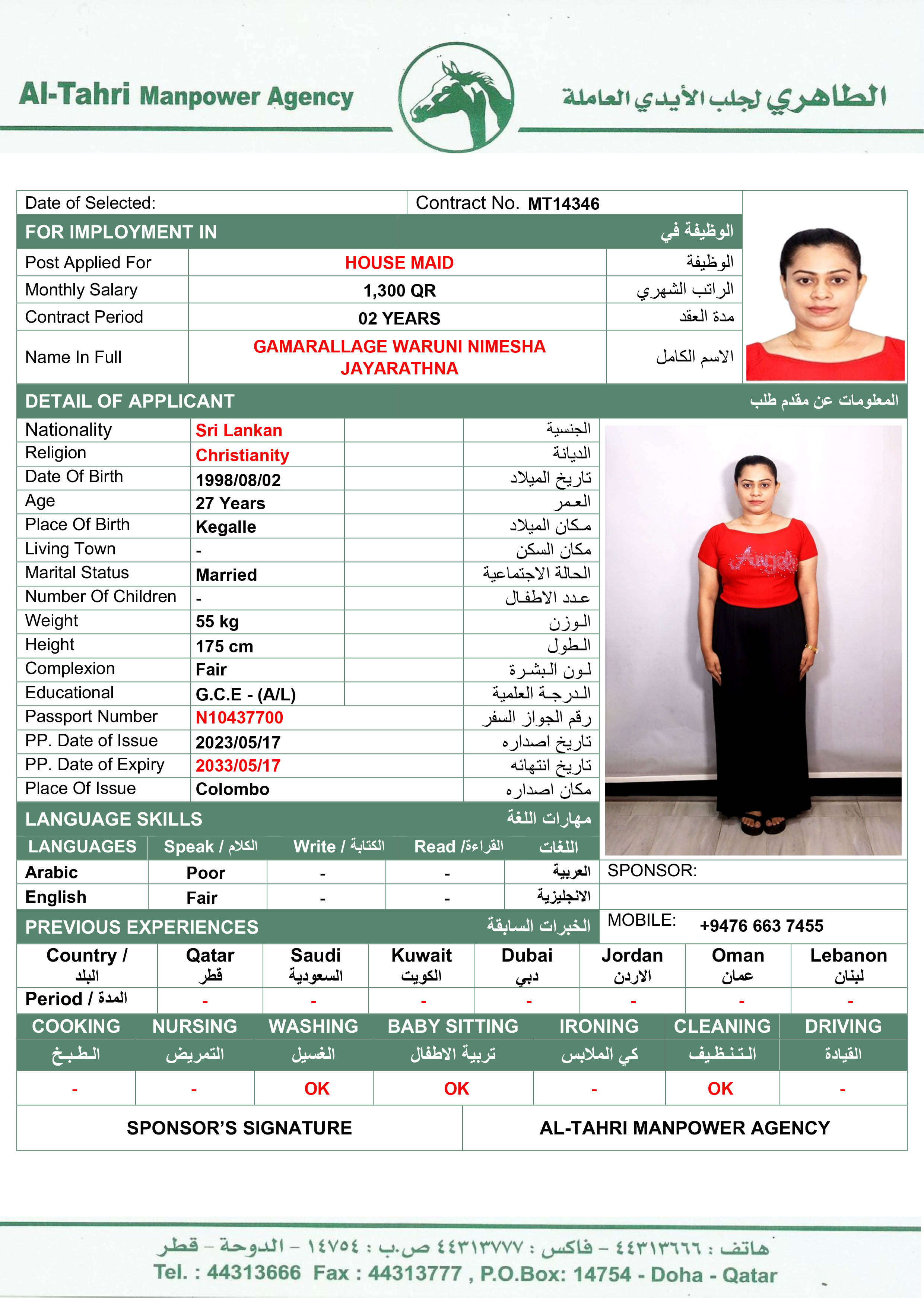 Name - English NIMESHA JAYARATHNA