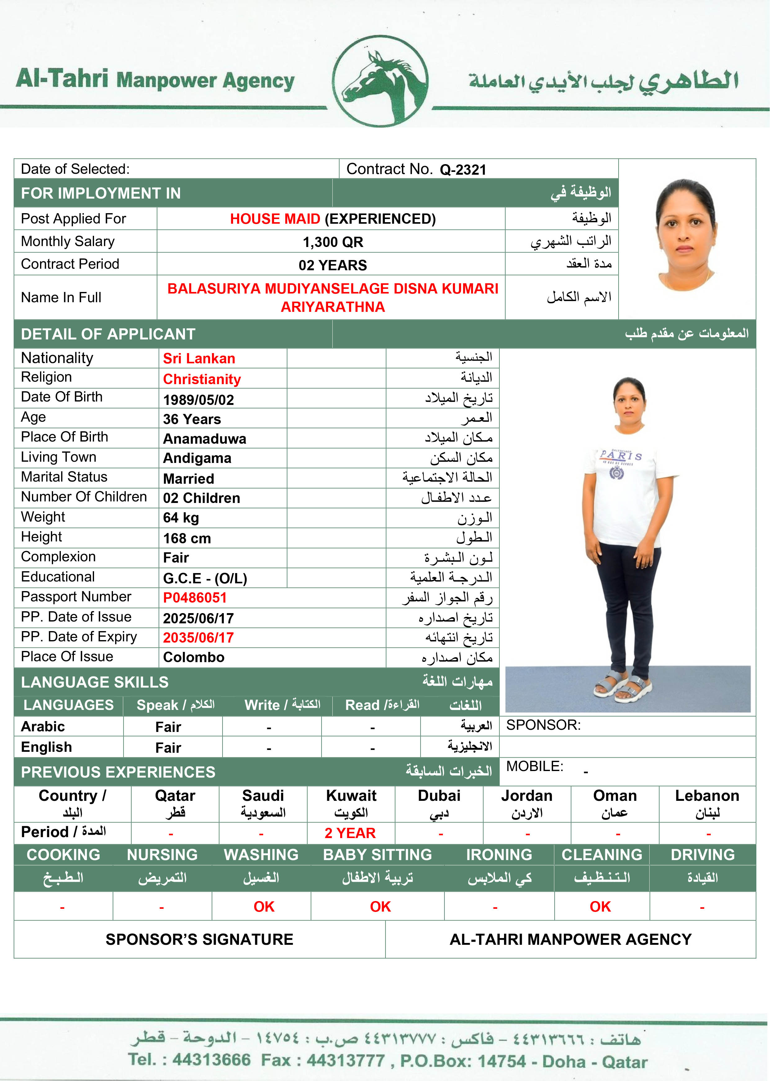 Salary 1300 QAR
