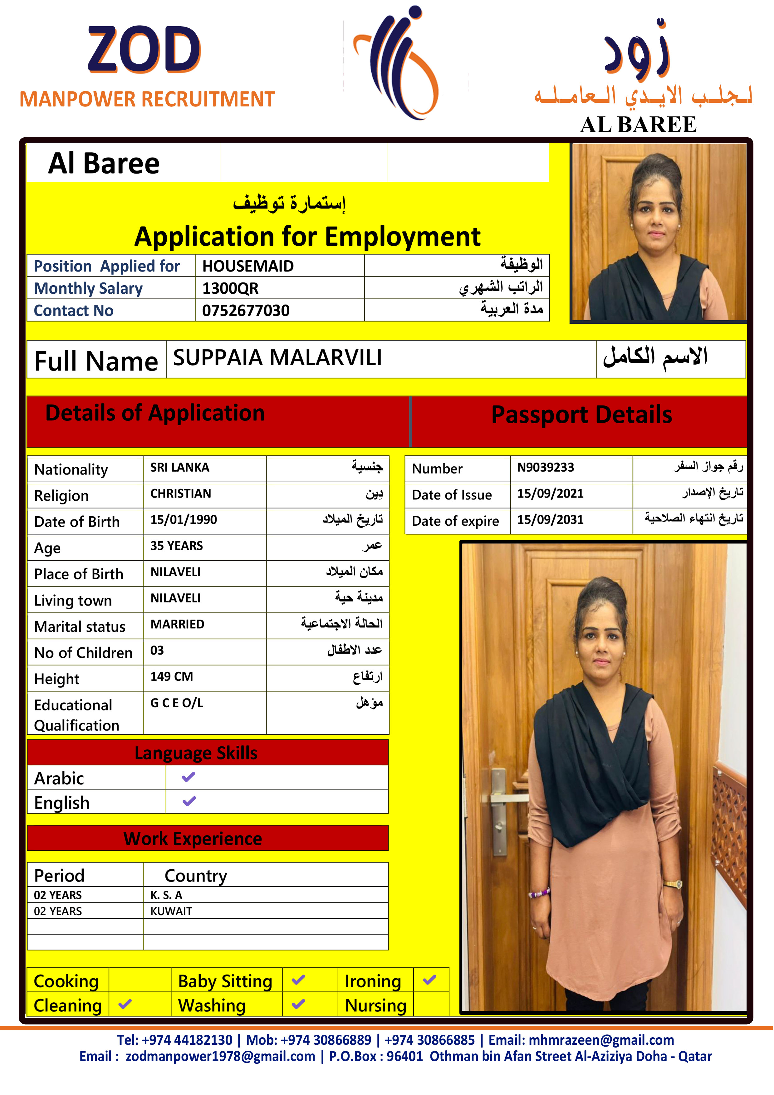 Welcome Are you looking for a driver, nurse, house manager, cleaner, nanny, secretary, professional workers for companies, security and guard personnel, foreman .... etc. Have you spent a long time looking for a maid? Have you made a great effort to find the right person? But to no avail ... Don't worry, we have the perfect solution to your problem Services…