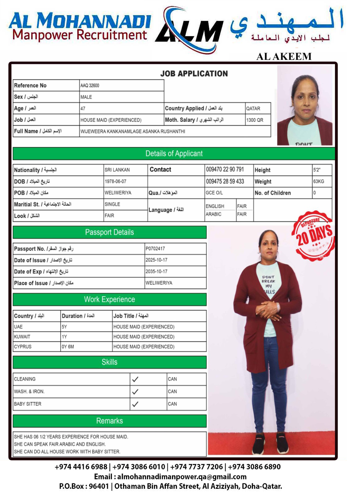 Welcome Are you looking for a driver, nurse, house manager, cleaner, nanny, secretary, professional workers for companies, security and guard personnel, foreman .... etc. Have you spent a long time looking for a maid? Have you made a great effort to find the right person? But to no avail ... Don't worry, we have the perfect solution to your problem Services…