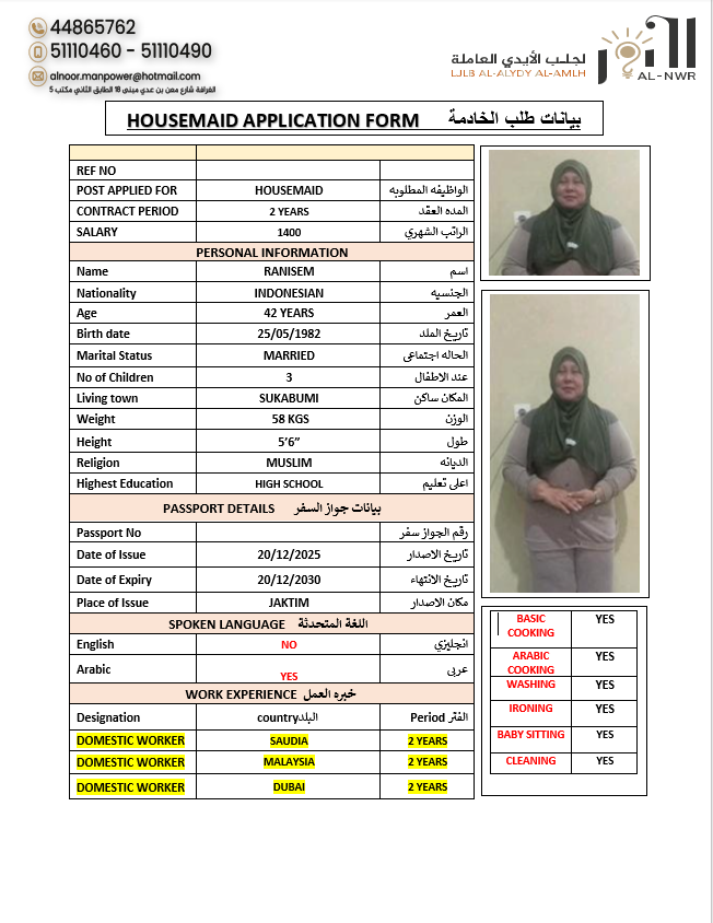 Email alnoor.manpower@hotmail.com
