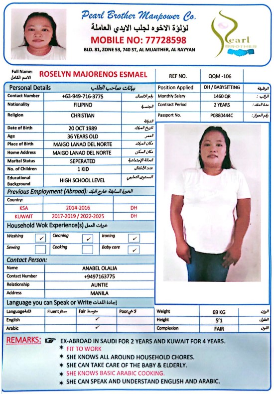 Name - English ROSELYN MAJORENOS ESMAE