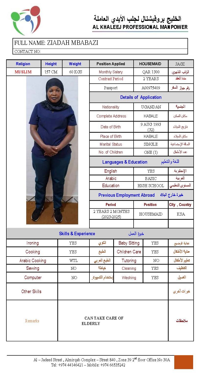 Name - English ZAIDAH MBABAZI