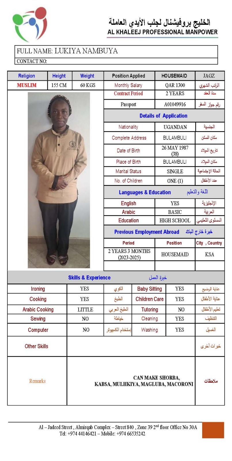 Name - English LUKIYA NAMBUYA