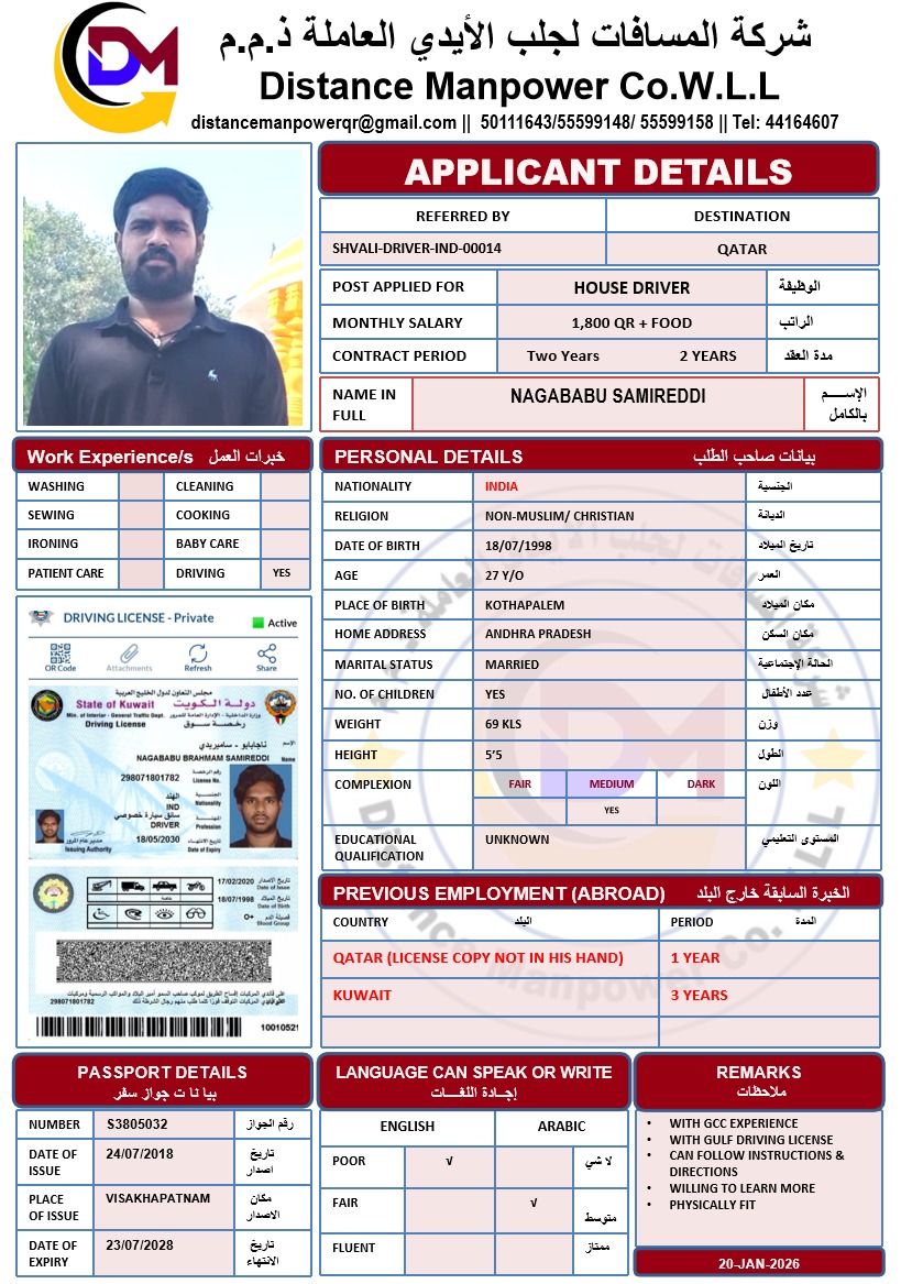 Welcome Are you looking for a driver, nurse, house manager, cleaner, nanny, secretary, professional workers for companies, security and guard personnel, foreman .... etc. Have you spent a long time looking for a maid? Have you made a great effort to find the right person? But to no avail ... Don't worry, we have the perfect solution to your problem Services…