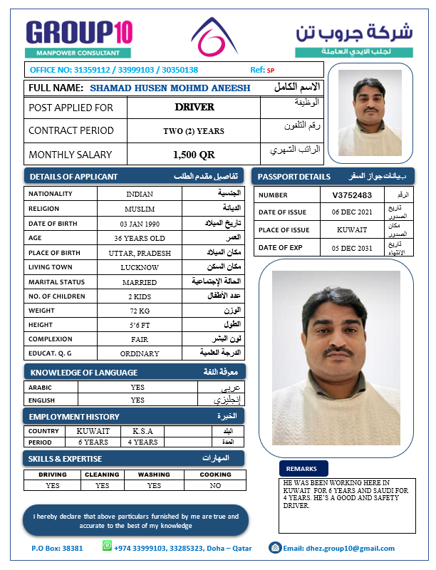 Name - English SHAMAD HUSEN MOHMD ANEESH