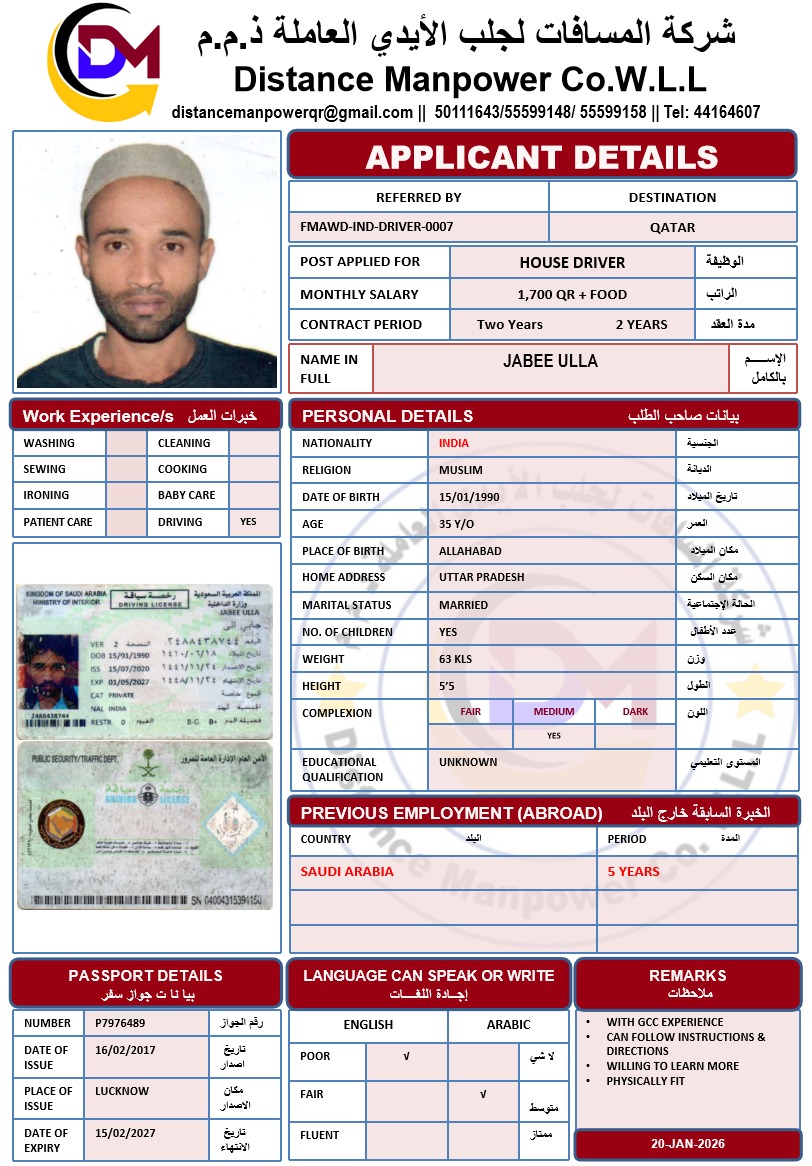 Welcome Are you looking for a driver, nurse, house manager, cleaner, nanny, secretary, professional workers for companies, security and guard personnel, foreman .... etc. Have you spent a long time looking for a maid? Have you made a great effort to find the right person? But to no avail ... Don't worry, we have the perfect solution to your problem Services…
