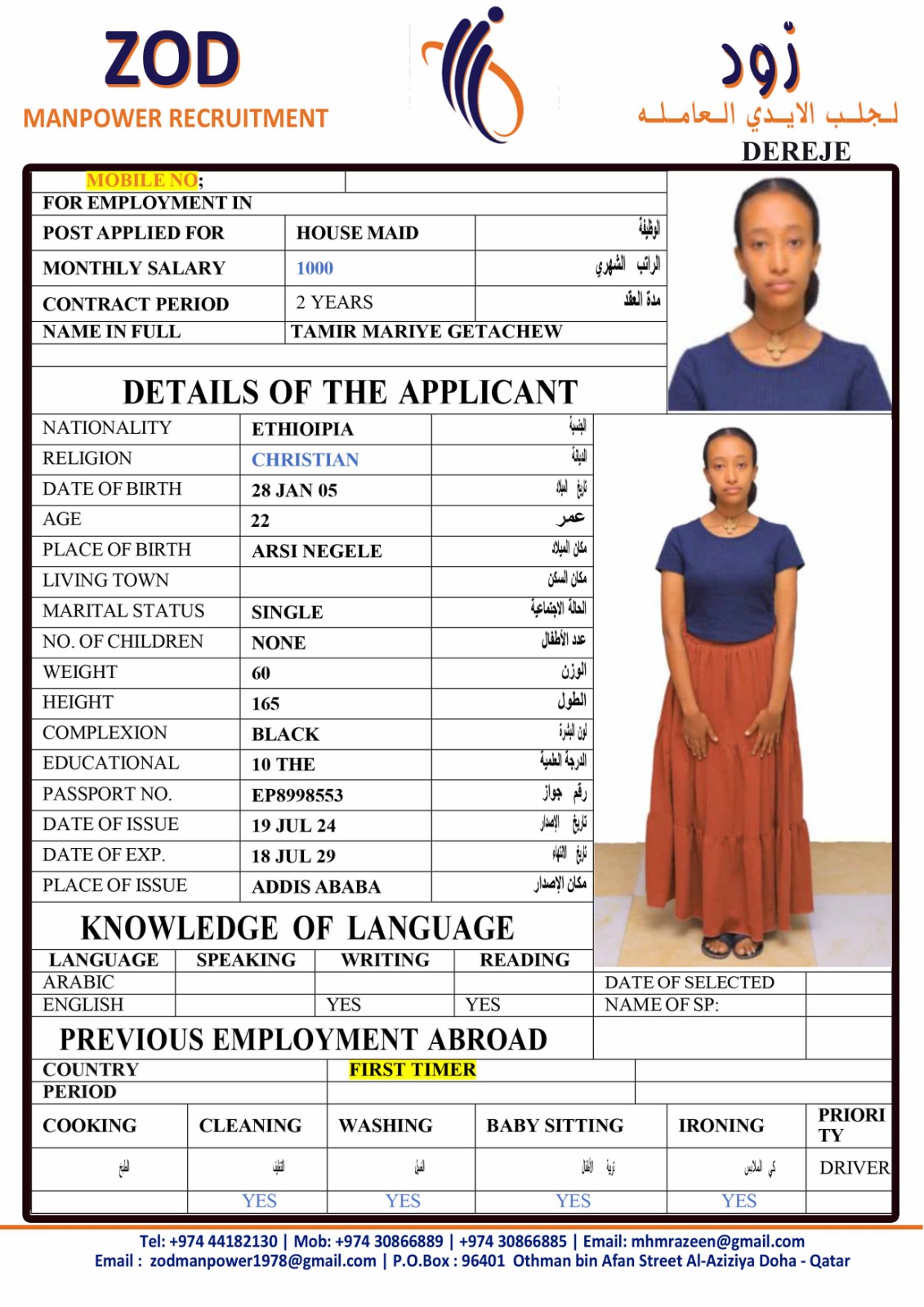 Name - English TAMIR MARIYE GETACHEW