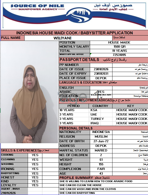 Name - English WILIYANI