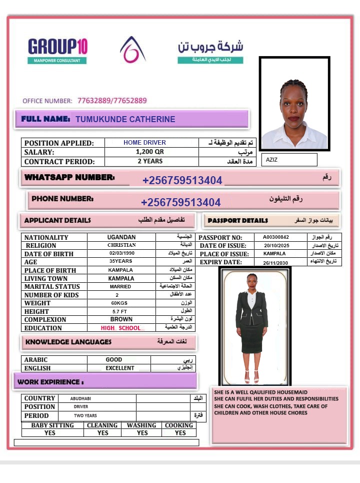 Name - English CATHERINE TUMUKUNDI /UGANDA DRIVER