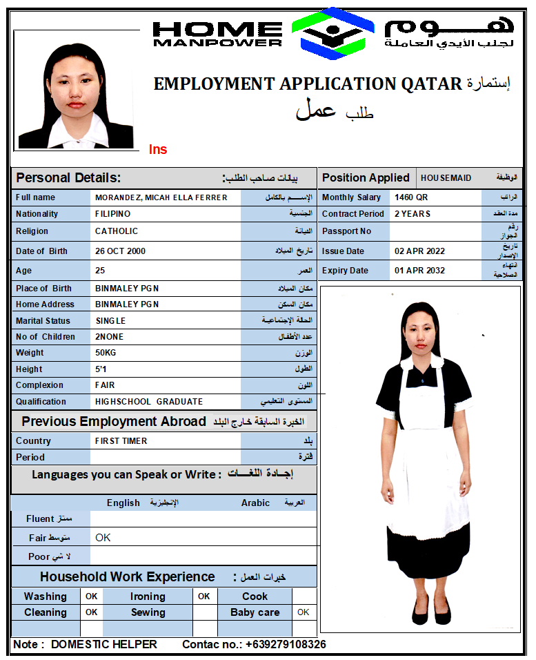 AVAILABLE FOR LWORK LAUNDRY, IRONING, CLEAN AND WASHING DISHES