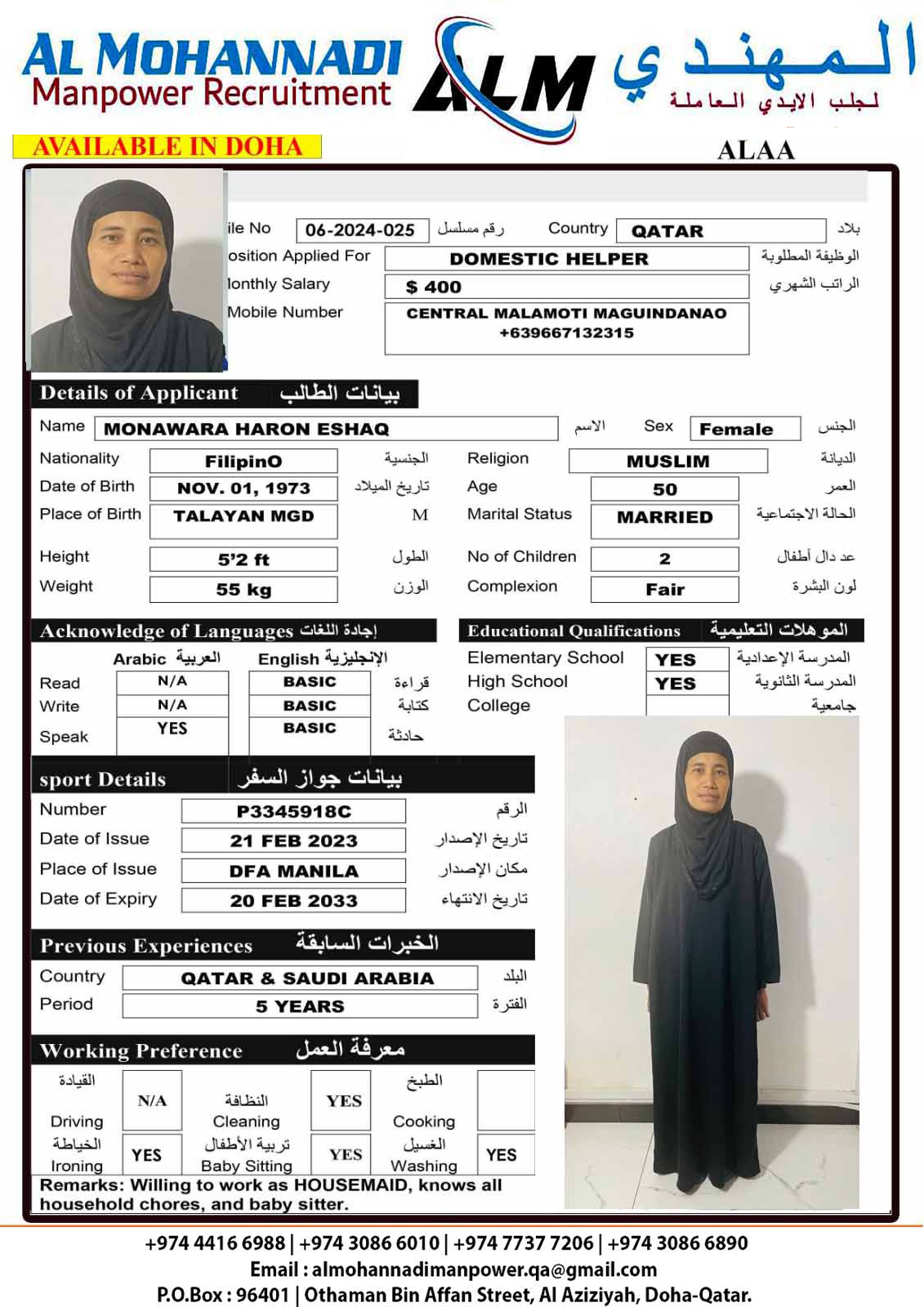 Email almohannadimanpower.qa@gmail.com