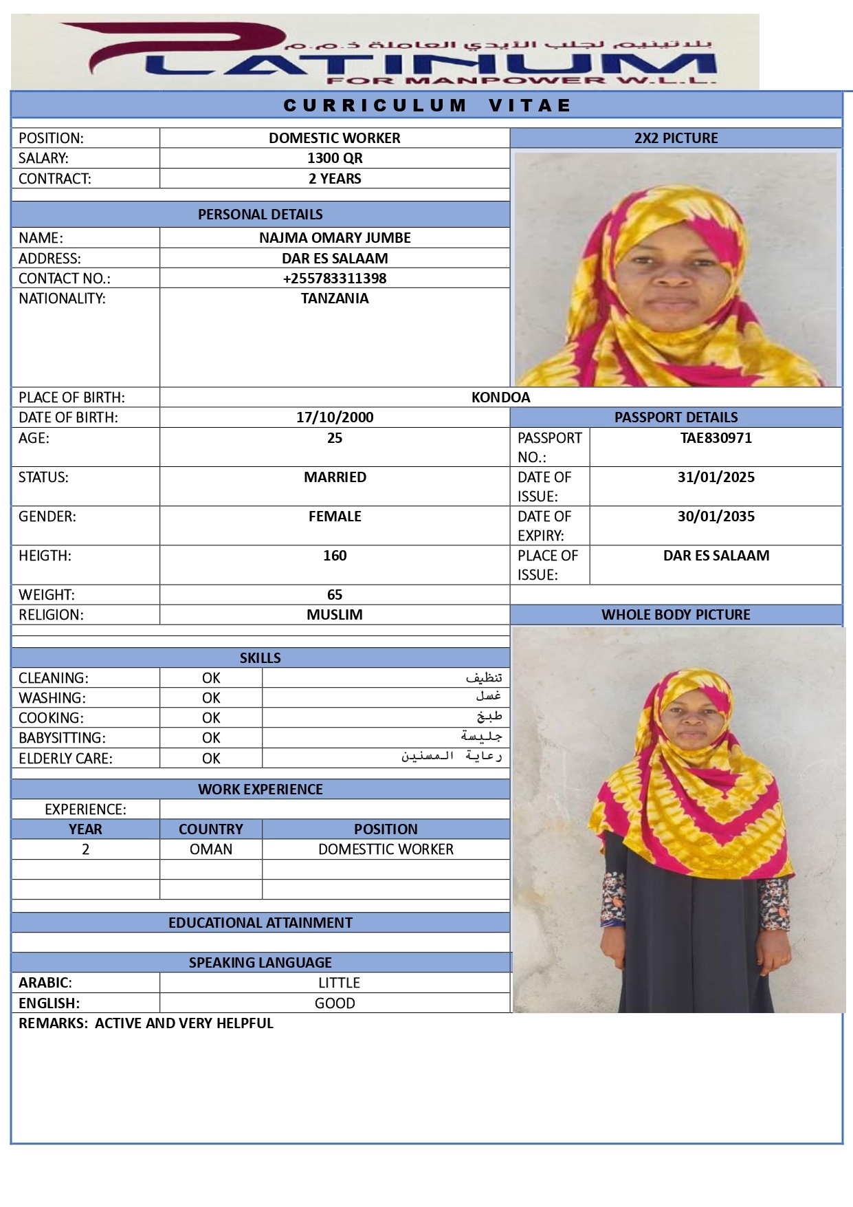 | Salary | 1300 QAR |
