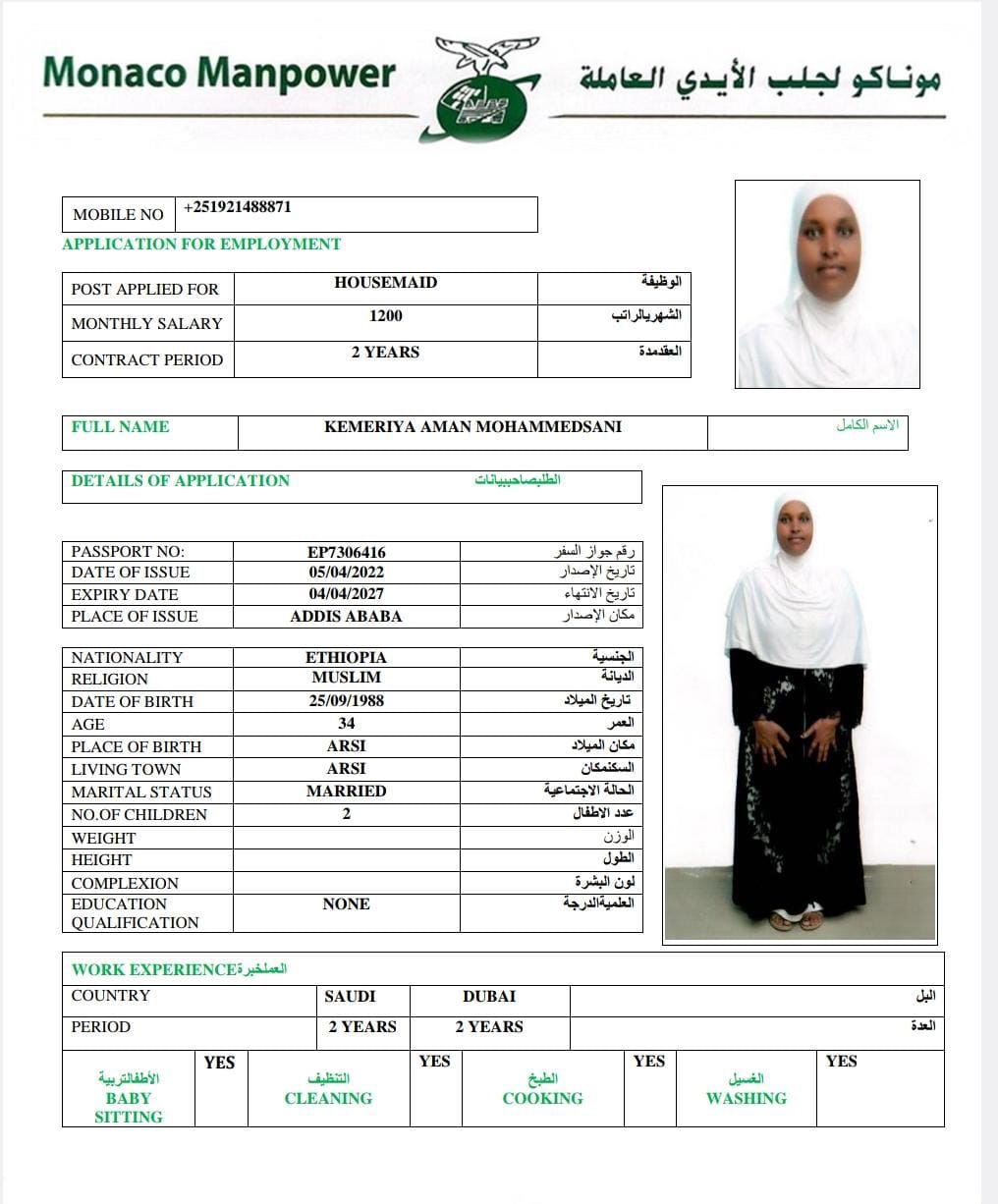 Name - English KEMERIYA AMAN MOHAMMEDSANI