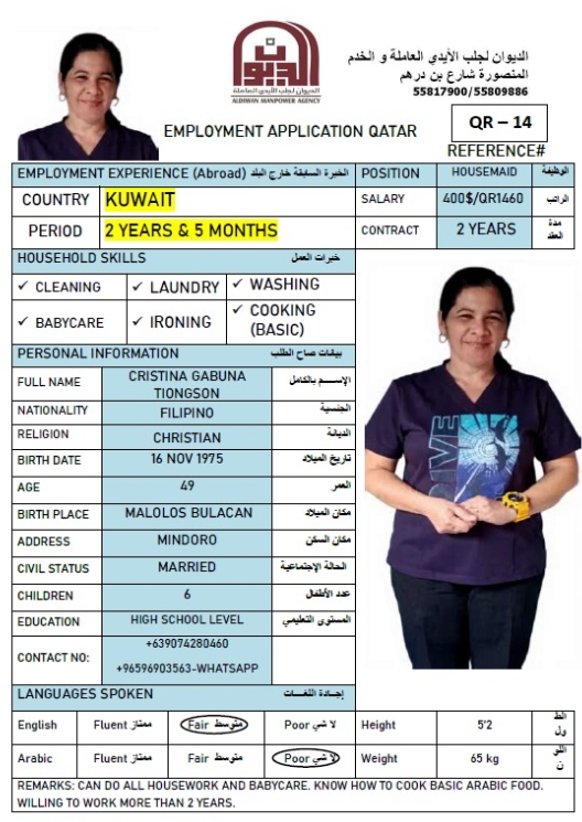 Name - English CRISTINA GABUNA TIONGSON