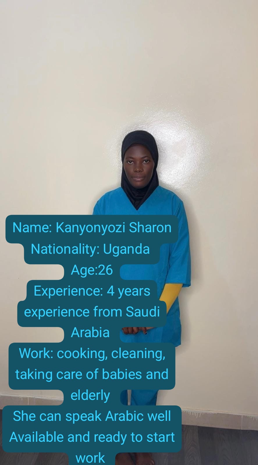Sharon is ready to prepare for your home delicious meals, she has been a cook in Saudi Arabia for 4 years, she is clean, quick and flexible. She is available on monthly contract, salary 2500, commission 500qr