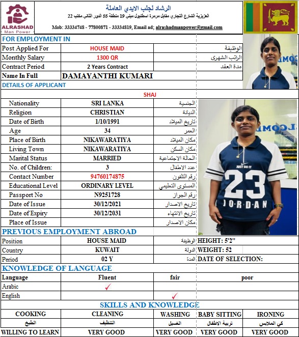Welcome Are you looking for a driver, nurse, house manager, cleaner, nanny, secretary, professional workers for companies, security and guard personnel, foreman .... etc. Have you spent a long time looking for a maid? Have you made a great effort to find the right person? But to no avail ... Don't worry, we have the perfect solution to your problem Services…