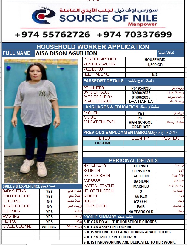 Welcome Are you looking for a driver, nurse, house manager, cleaner, nanny, secretary, professional workers for companies, security and guard personnel, foreman .... etc. Have you spent a long time looking for a maid? Have you made a great effort to find the right person? But to no avail ... Don't worry, we have the perfect solution to your problem Services…
