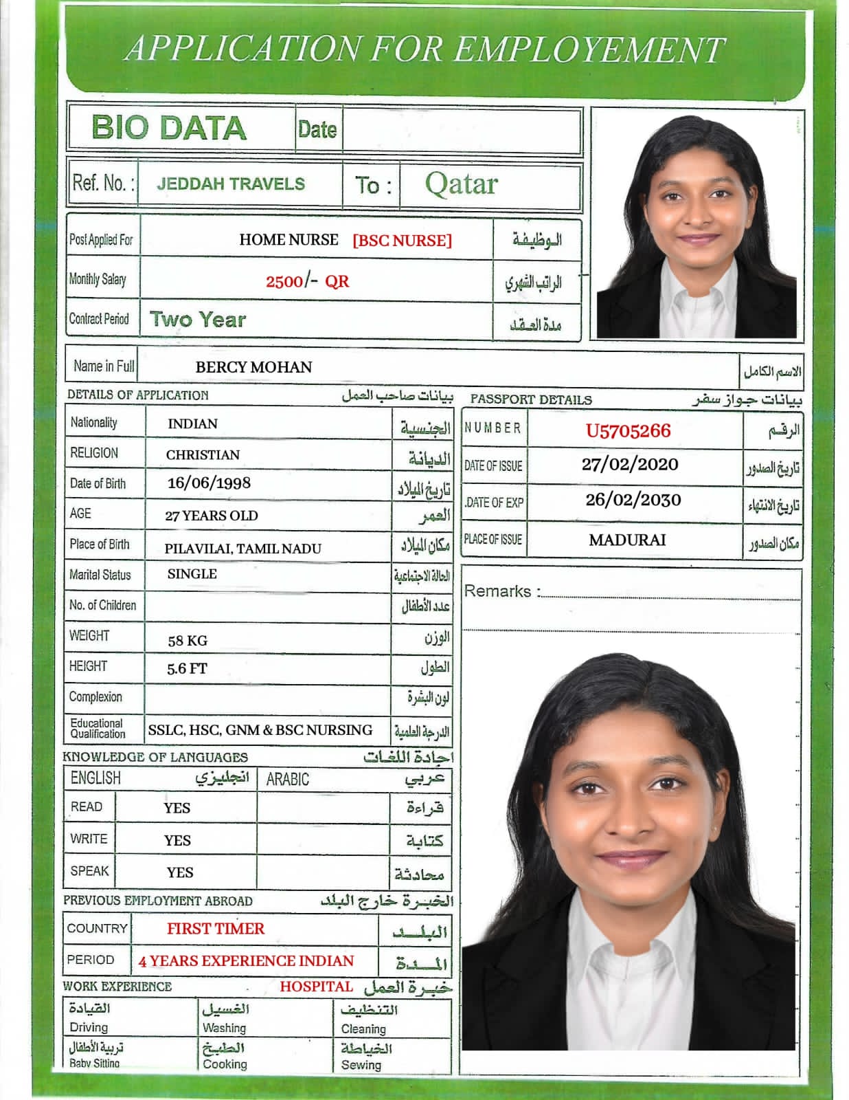 She is a B.Sc Nurse. She has 4 years experience in Indian Hospital. She can do all nursing care