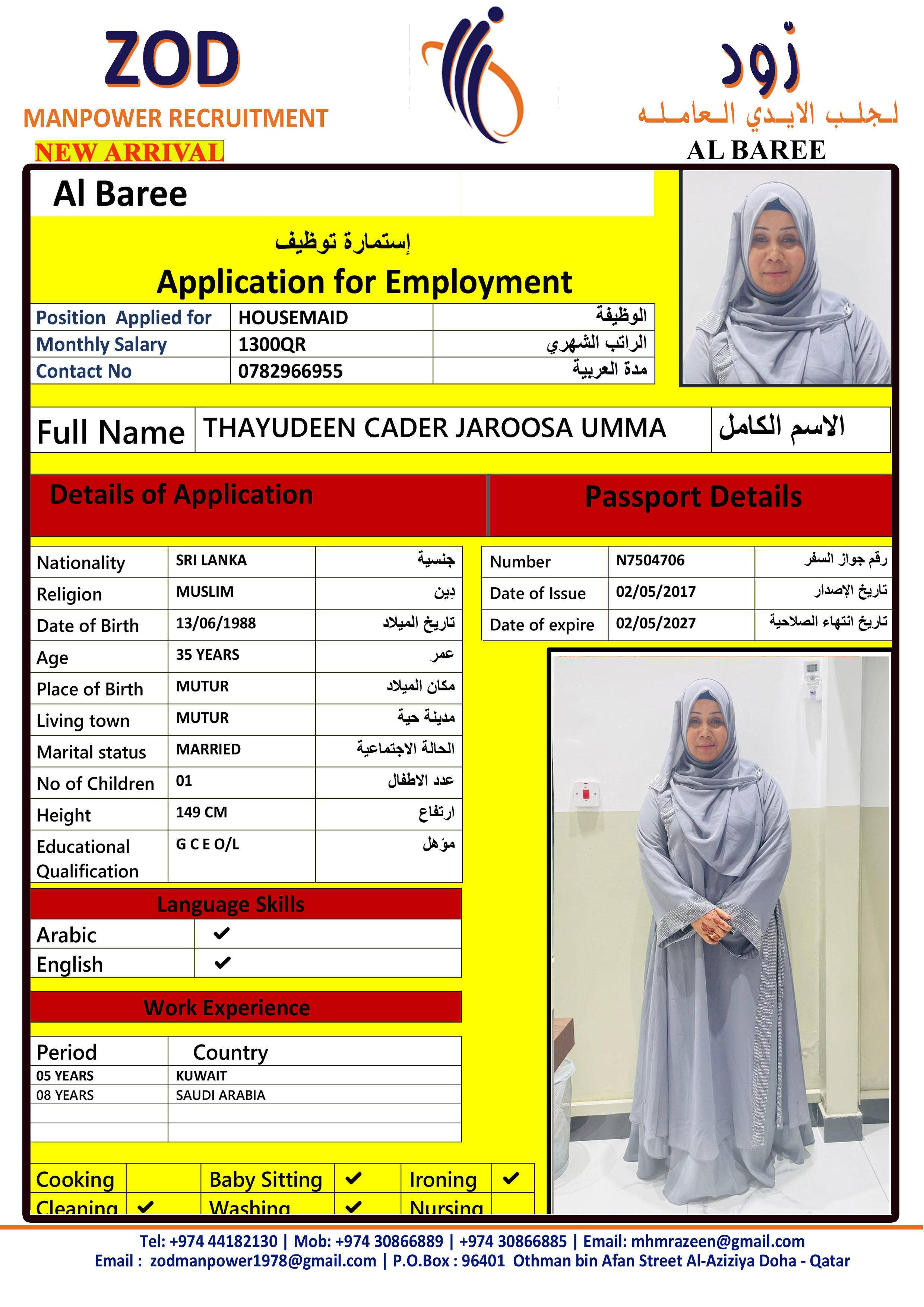 JAROOSA UMMA THAYUDEEN CADER