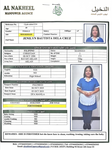 Welcome Are you looking for a driver, nurse, house manager, cleaner, nanny, secretary, professional workers for companies, security and guard personnel, foreman .... etc. Have you spent a long time looking for a maid? Have you made a great effort to find the right person? But to no avail ... Don't worry, we have the perfect solution to your problem Services…