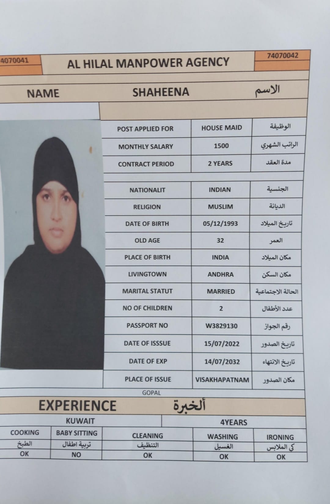 Name - English SHAHEENA