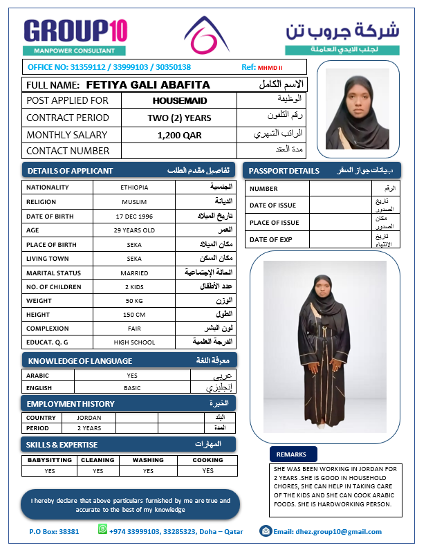 Name - English FETIYA GALI ABAFITA