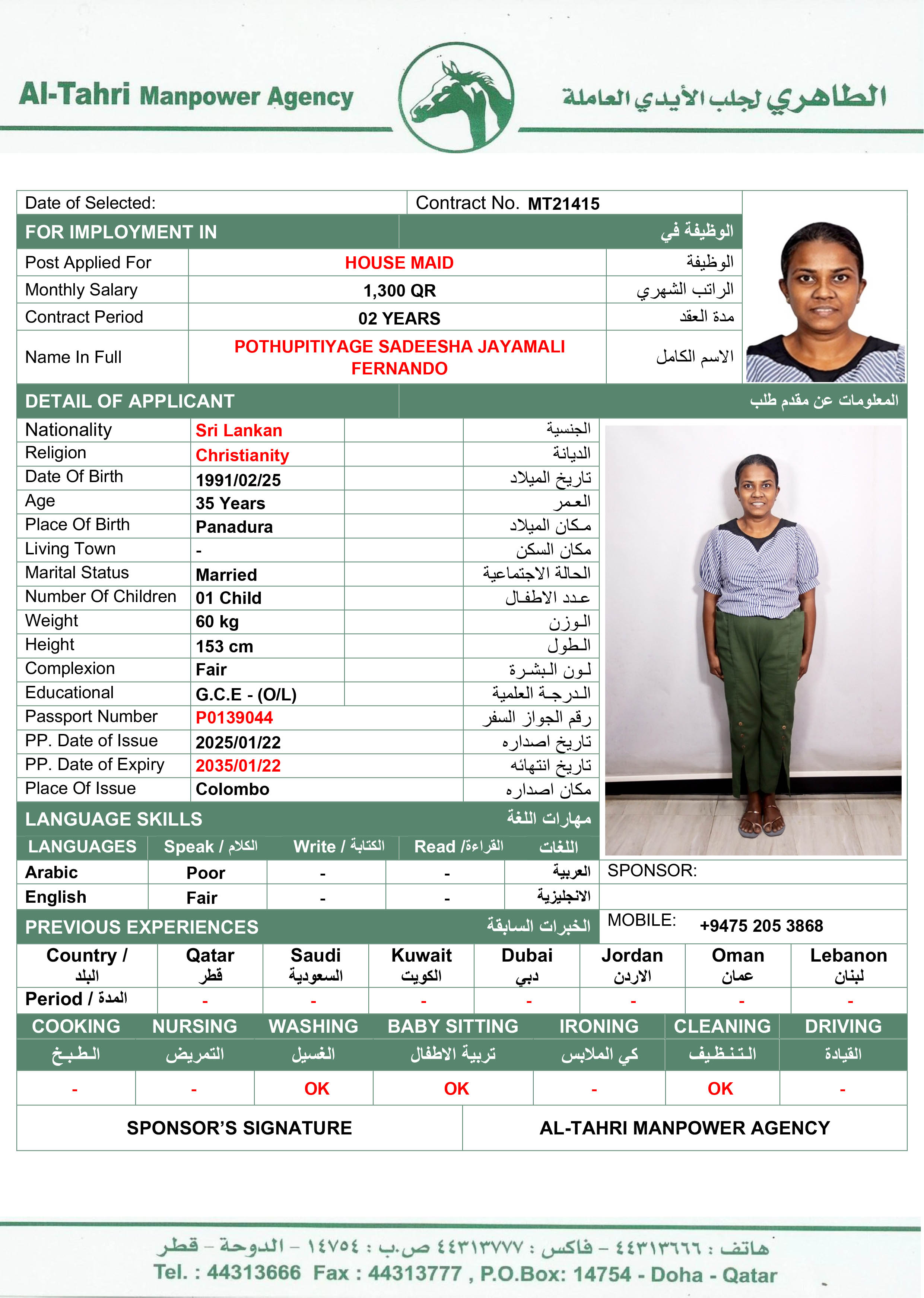 Name - English JAYAMALI FERNANDO