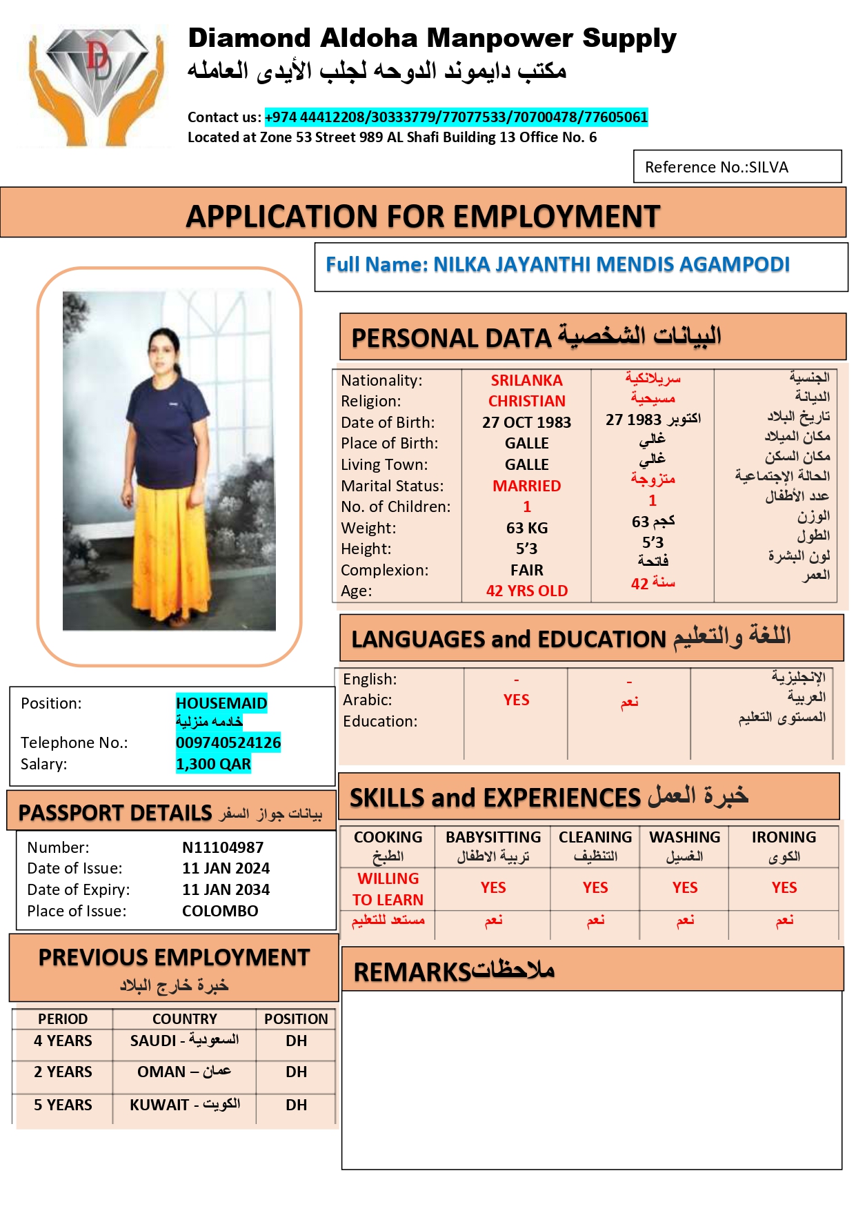 Name - English NILKA JAYANTHI MENDIS AGAMPODI
