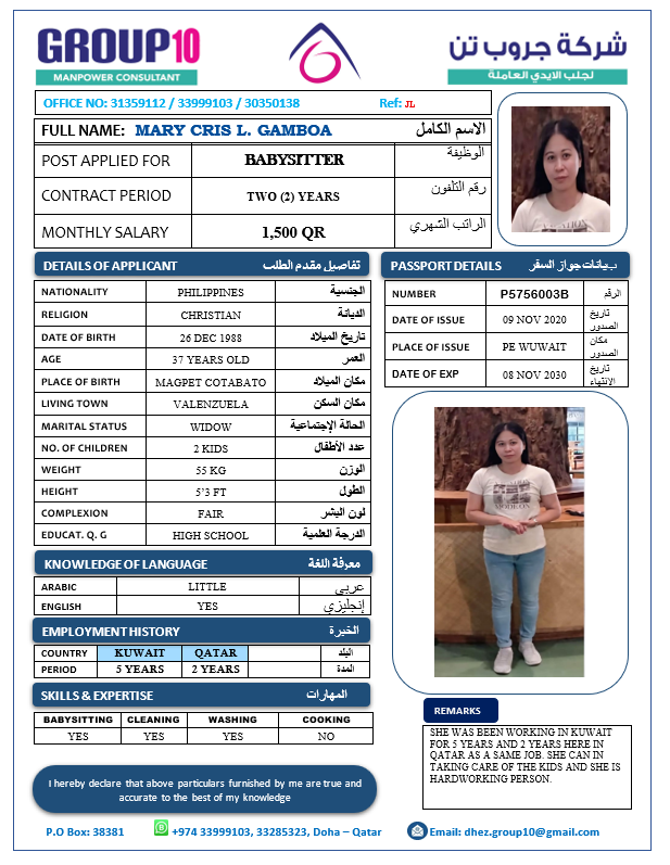 Name - English MARY CRIS L. GAMBOA